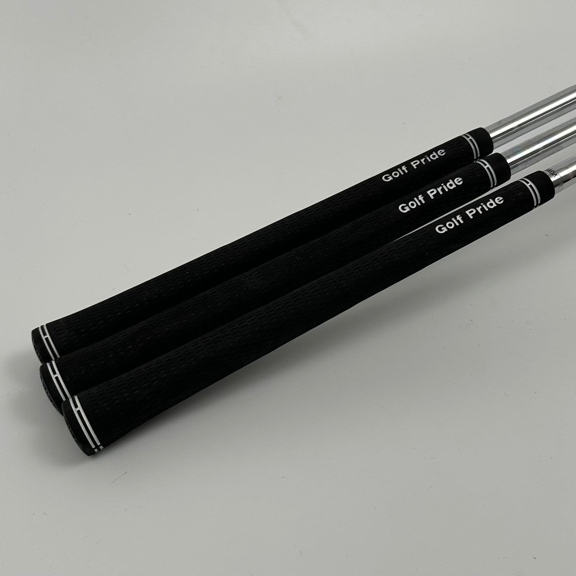 Fattning: Vänster Kategori: Wedgeset Loft: 50°, 52°, 60° Längder: 50° - 35,5", 52° - 35,5", 56° - 35,25" Styvhet: Wedge-flex Skaftmaterial: Stål Skaft: True Temper Dynamic Gold Tour Issue Spinner Wedge Grepp: Golf Pride Tour Velvet Skick (skala 1-10) Huvud: 8+ Skaft: 9 Grepp: 9